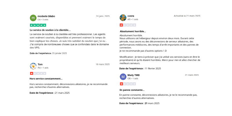 En revanche, plusieurs critiques reviennent de manière récurrente. La principale concerne les prix de renouvellement, jugés trop élevés par rapport à la première année. Certains utilisateurs estiment que la différence tarifaire devrait être plus progressive. D’autres relèvent que le support, bien que très disponible, ne propose pas toujours des réponses en français, ce qui peut freiner les utilisateurs non anglophones. Quelques cas isolés évoquent des difficultés lors de la résiliation, mais sans que cela semble constituer un problème systémique.