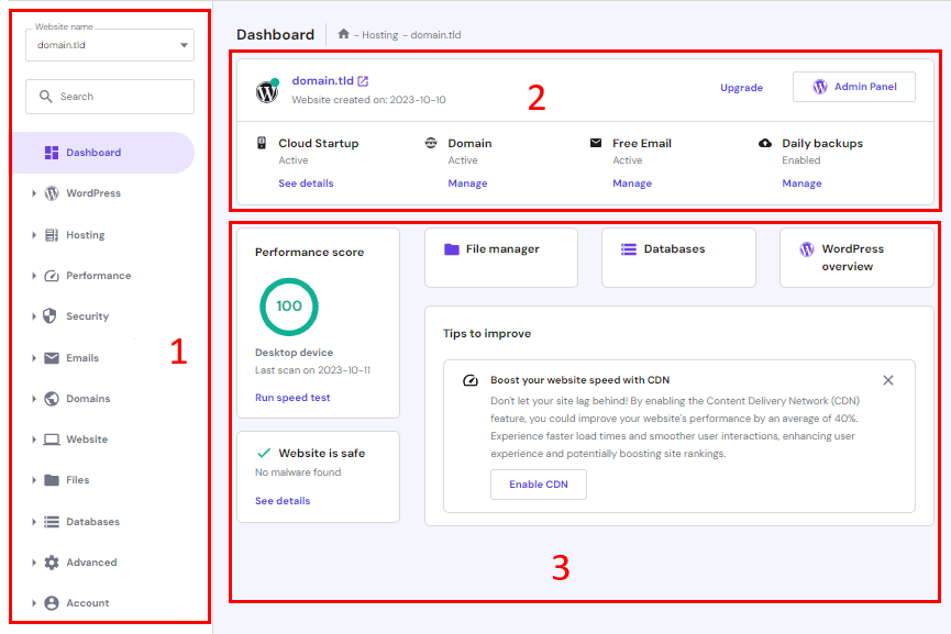 Hostinger mise sur une interface propriétaire nommée hPanel, développée en interne. Elle se distingue par son design épuré, une navigation fluide et des fonctionnalités bien organisées. L’interface permet de gérer facilement les domaines, les fichiers, les bases de données, les e-mails, et les comptes FTP. Même sans expérience technique, il est possible de déployer un site en quelques clics grâce à des assistants visuels et une hiérarchie logique. L’espace client est responsive et accessible sur mobile, ce qui renforce sa praticité.