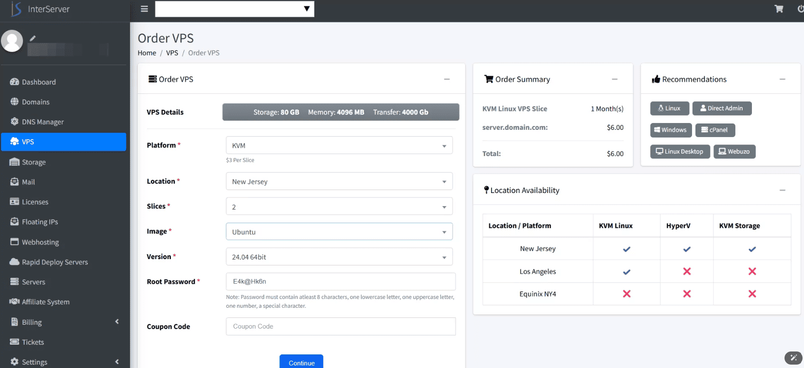 Les options de systèmes d’exploitation sont nombreuses (CentOS, Ubuntu, Debian…), et les ressources sont allouées de manière stable, sans sur-allocation. InterServer propose également un service de migration VPS gratuite, pris en charge par son équipe interne.