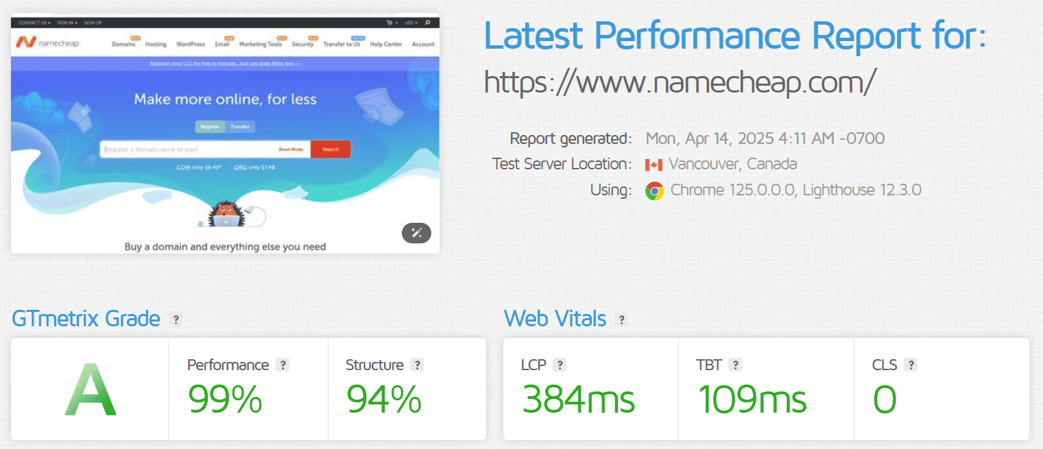 En revanche, Namecheap garantit un uptime de 99,9 %, légèrement inférieur à celui de Ionos. En pratique, les tests révèlent un taux de disponibilité de 99,91 %, ce qui reste cohérent avec l’engagement de l’hébergeur. Toutefois, cette fiabilité peut fluctuer en fonction du type de plan choisi. Par exemple, les plans d’hébergement mutualisé de Namecheap affichent des performances moindres par rapport aux offres VPS, qui bénéficient de ressources plus dédiées. Là où Ionos mise sur une infrastructure de pointe, Namecheap parvient à maintenir une disponibilité correcte grâce à une optimisation logicielle continue.