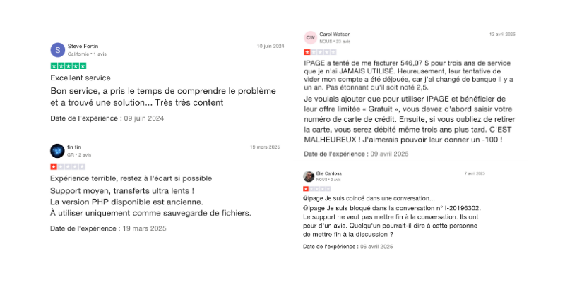 Les avis des utilisateurs d’iPage sont partagés, avec une tendance marquée à la déception après la première année d’usage. Sur les principales plateformes d’évaluation comme Trustpilot, SiteJabber ou Google Reviews, les notes moyennes tournent autour de 2,4 à 2,8 sur 5, avec des retours très contrastés selon le niveau d’exigence des clients.