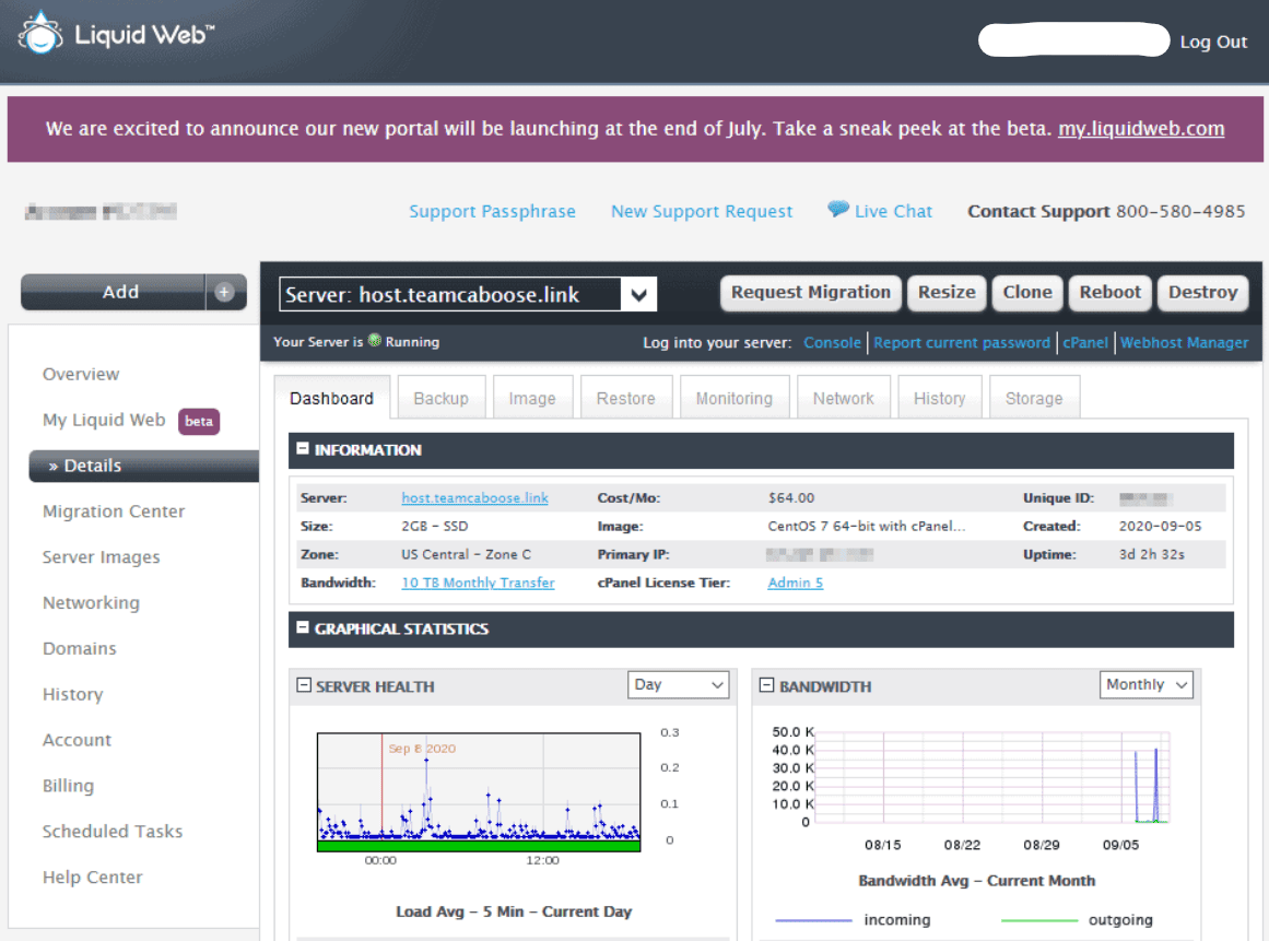 Liquid Web offre à ses utilisateurs une interface de gestion robuste et intuitive pour administrer leurs services d’hébergement. Selon le type de service souscrit, les clients peuvent accéder à différents panneaux de contrôle, notamment cPanel/WHM et le Tableau de Bord Nexcess.