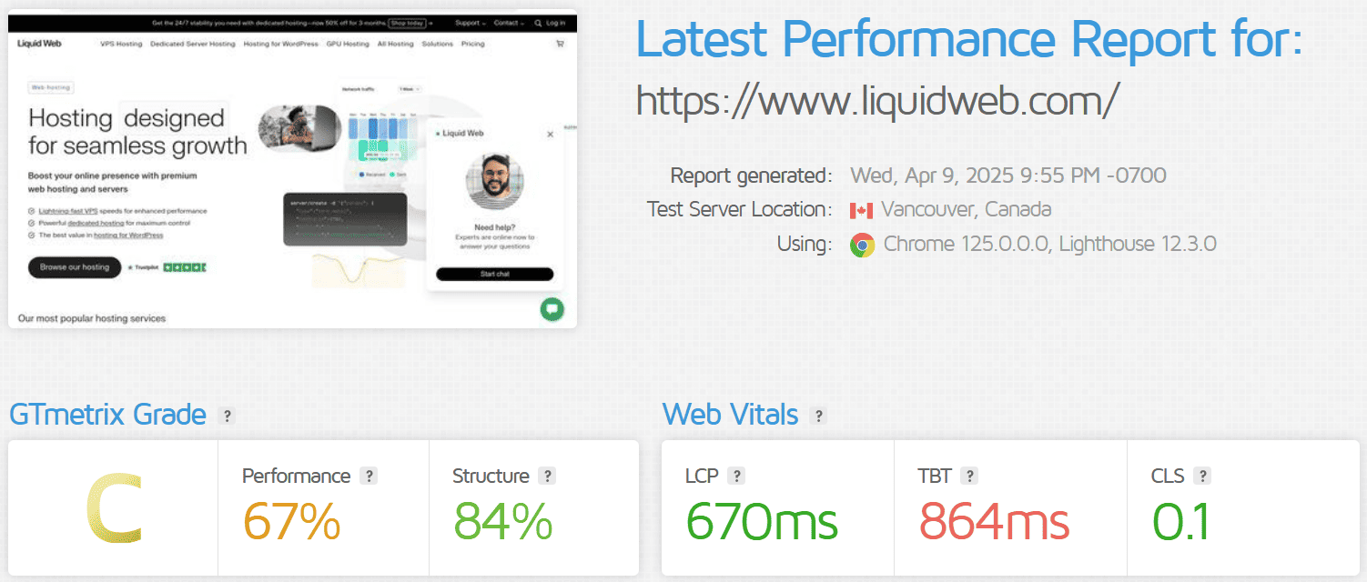 La vitesse de chargement d’un site web est cruciale pour l’expérience utilisateur et le référencement. Des tests indépendants ont évalué les performances de Liquid Web en utilisant des outils tels que GTmetrix. Par exemple, un test a montré un temps de chargement moyen de 1,8 seconde, avec des variations entre 1,3 et 2 secondes, ce qui est considéré comme rapide et compétitif dans l’industrie de l’hébergement.