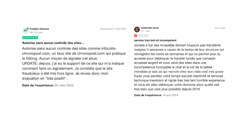 Les retours clients sur NameSilo révèlent une image contrastée du service. Sur les plateformes d’avis comme Sitejabber, NameSilo obtient une note moyenne faible (1,5/5 sur plus de 35 avis), avec des critiques récurrentes sur la lenteur du support client et la communication jugée insuffisante. Certains utilisateurs évoquent des délais de traitement trop longs pour des problèmes simples, ce qui nuit à l’expérience globale, notamment pour ceux qui ne maîtrisent pas l’anglais.