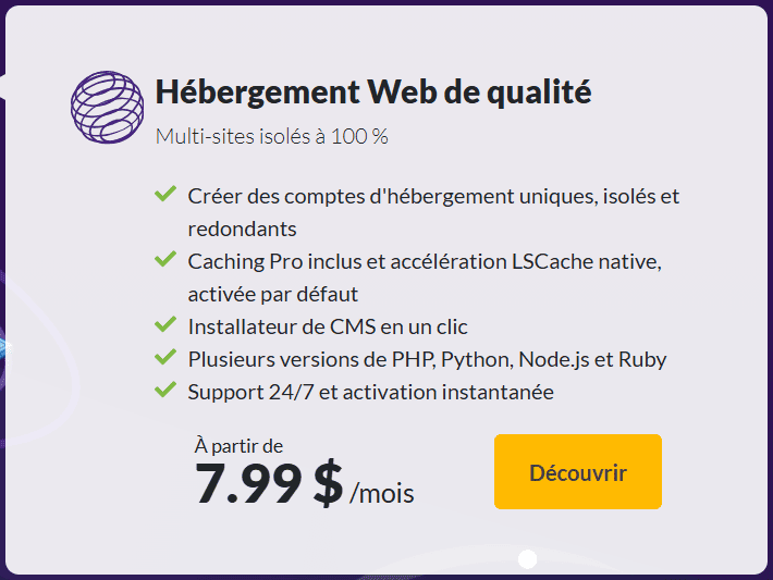 Si vous cherchez une solution encore plus accessible, avec une interface simplifiée, un support très guidant et des tarifs encore plus bas, LWS est notre coup de cœur cette année. Idéal pour les débutants et les projets clés en main.